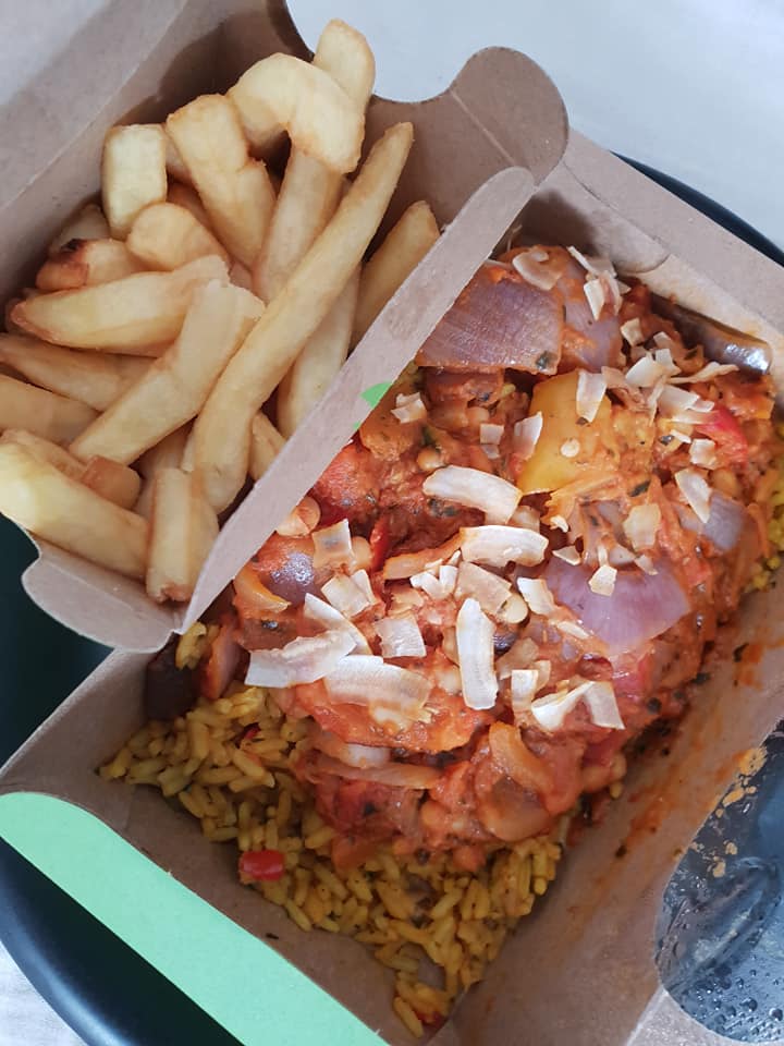 With regards to calories… I tried Nando’s for the first time ever today. Yes, I know… where have I been all this time?! Well, in my defense, when Nando’s first came onto the scene they didn’t offer any vegetarian options, so I always avoided it, naturally. However, we were given a Restaurant Choice gift card and there were only a few places which accepted it, especially local to us. Pizza Hut and Pizza Express were on the list, but we had takeaway pizza last night (told you it’s been bad for me eating!), so we wanted to try something different. I also wanted something that we could take away as I wanted to get back from shopping in time to watch the Arsenal vs Chelsea match. I checked the menu at Nando’s and was pleasantly surprised. I actually had quite a few options to choose from! I was tempted by the mushroom and halloumi option, but went with the Veggie Cataplana. Char-grilled vegetables, chickpeas and beans, in a fiery, rich tomato and coconut sauce, served with spicy rice and sprinkled with coconut shavings. I had a regular serving of chips on the side, and to be honest, I was impressed before we even got the food home. The service was great, staff were friendly, and the packaging of the food to take out was really good (all in microwaveable and recycling friendly cardboard boxes). The smell of the food in the car for the drive home was just intense and I couldn’t wait to tuck in. Needless to say, it didn’t disappoint! The flavours were crazy and the spice was also nice (I played it safe and went for medium as I hadn’t eaten there before). Within a few minutes of finishing I had signed up for the loyalty card! Yum!