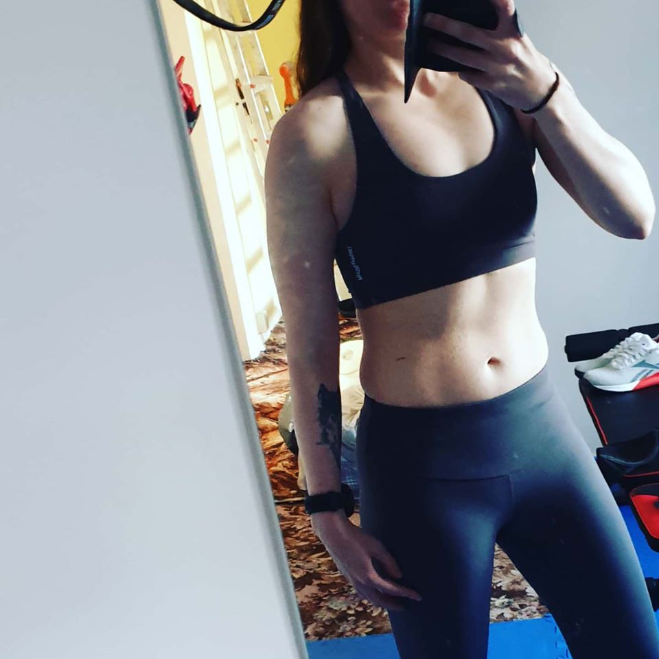 I’m at the stage now where I’m no longer avoiding mirrors! In fact, Chris has recently put a mirror on the gym room wall (we have another one to put up but didn’t buy enough double-sided tape!). This has helped me to see my progress and not get frustrated at the slow scale movement. I don’t always have time to take measurements, so just being able to see progress is a big boost.