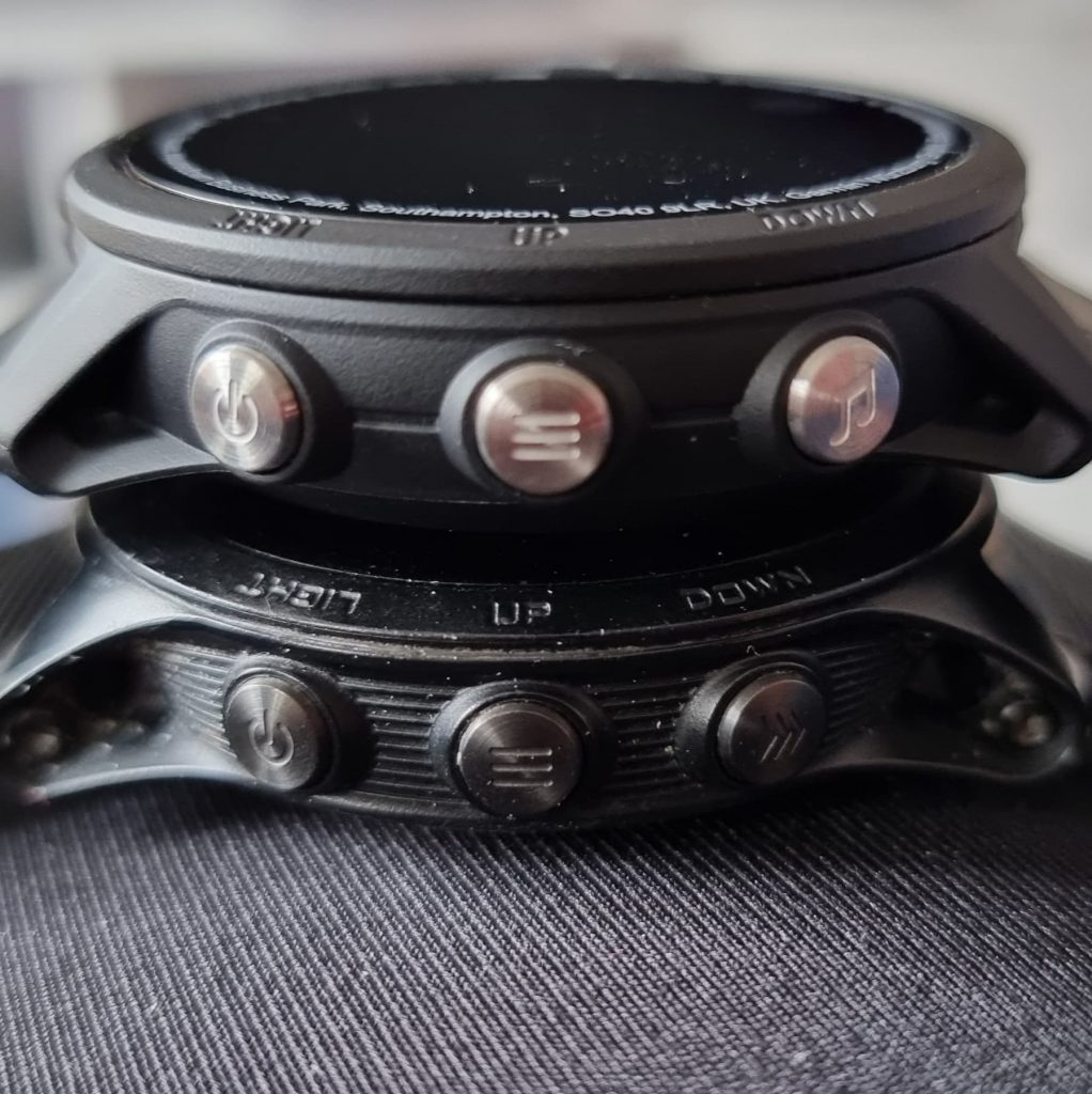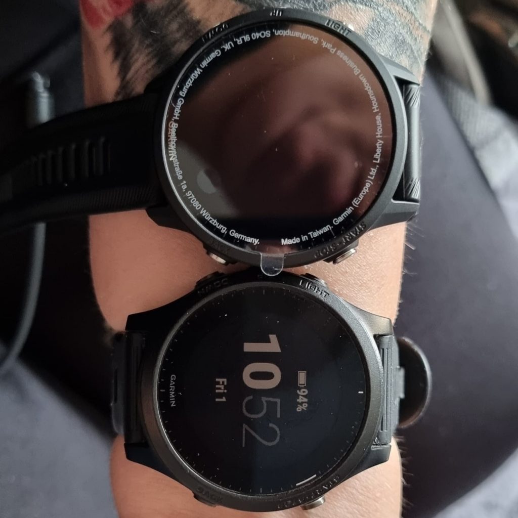 Aside from the Garmin 955 being in pristine condition, the easiest way to tell it apart from the 945 was the colour of the buttons and the buckle. These are darker on the 945, but more of a silver colour on the Garmin 955. The solar version of the Garmin 955 does have darker features, which I personally prefer, but paying extra for the solar model just didn’t seem worth it to me. The battery life on the 945 was already great, even for a three year old watch, so the improvements on the base model Garmin 955 should serve me well. The solar model can add a few more hours of battery life, but that is based on getting three hours of solar power. I also wear my watch with the watch face facing inwards on the inside of my wrist, which would also limit the amount of sunlight it could catch.